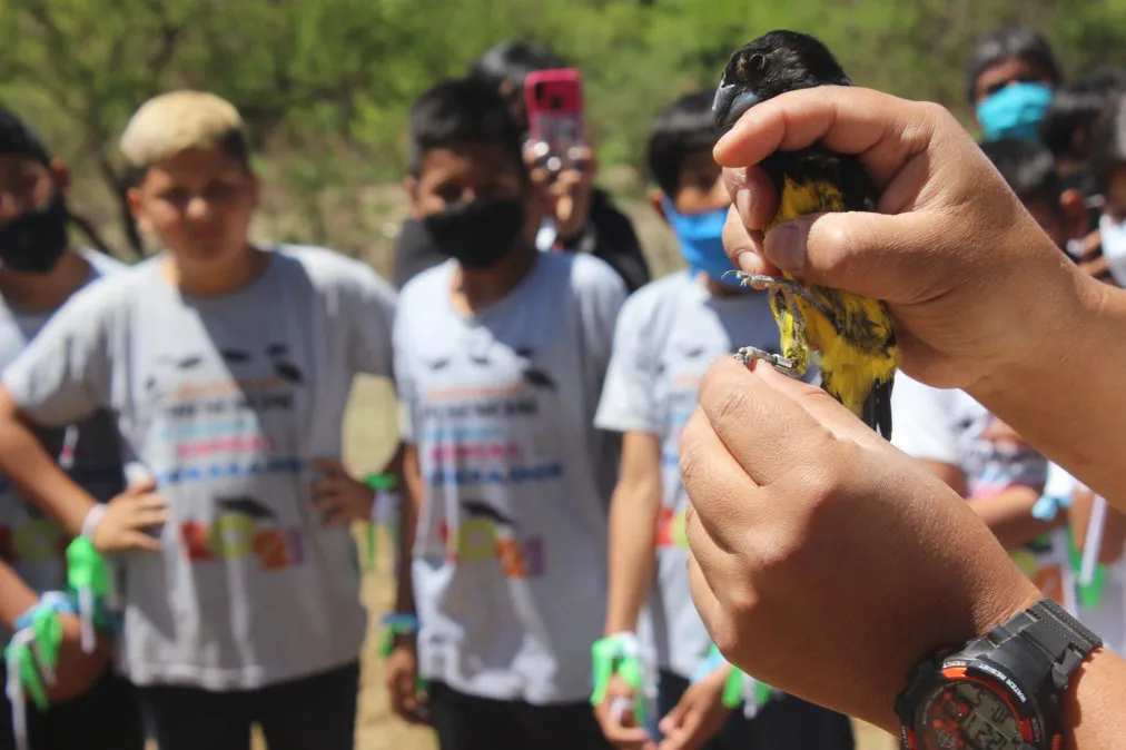 Finalmente, los y las estudiantes participaron de la explicación de Julio Mamaní, técnico del CAFAJu, quien brindó una explicación del trabajo de sestrería de aves con un aguilucho común (Busardo dorsirrojo); realizaron un Rito del árbol, a través del cual agradecieron a la naturaleza y se comprometieron a cuidarla, luego de plantar un ejemplar de Ceiba speciosa (Ceiba speciosa), popularmente conocido como “palo borracho”. Coronó la jornada, el momento de liberación de un ejemplar de rey del bosque (Pheucticus aureoventris); en los próximos días se hará lo propio con 2 ejemplares de corzuela parda (Mazama gouazoubira); 1 carpincho (Hydrochoerus hydrochaeris); 1 suri (Rhea americana); y 1 zorro del monte (Cerdocyon thous). Y antes de despedirse realizaron un recorrido por el predio del CAFAJu.