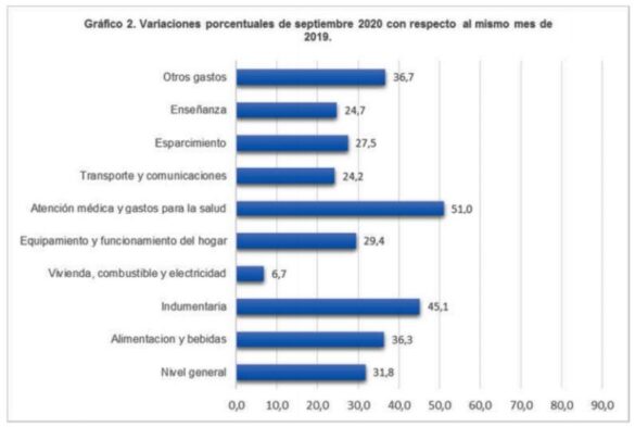 El organismo indicó que las subas de precios fueron del orden del 2,5%. En este sentido, en los nueve meses que pasaron del año, la inflación acumula un 20%. Por otra parte, la variación con respecto a septiembre del año pasado fue de 31,8%.