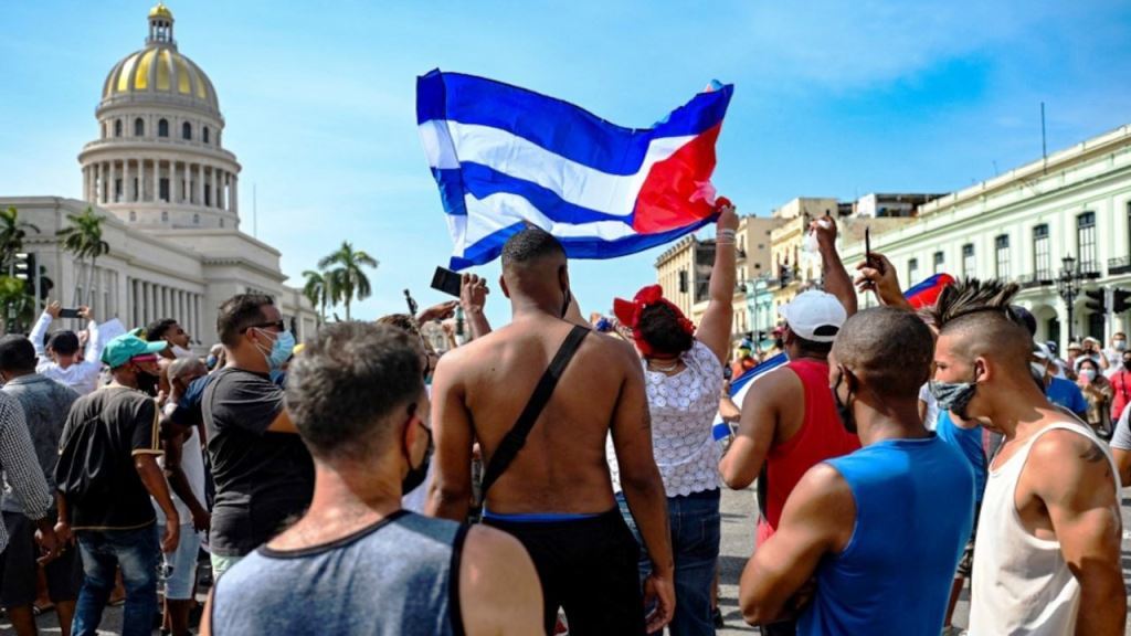 Ante la masiva movilización de manifestantes, el jefe de la dictadura cubana Miguel Díaz-Canel prometió represión y llamó a los “revolucionarios comunistas a combatir” a los cubanos que protestan: “Estamos dispuestos a dar la vida. Tienen que pasar encima de nuestros cadáveres si quieren enfrentar a la revolución. Estamos dispuestos a todo”.