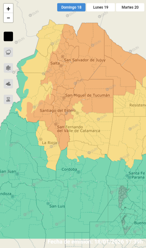 El Servicio Meteorológico Nacional (SMN) mantiene vigente una Alerta Naranja para amplias zonas de la provincia de Jujuy, debido a la persistencia de lluvias y tormentas fuertes, algunas localmente severas, que continuarán afectando la región durante las próximas horas y a lo largo de este lunes.