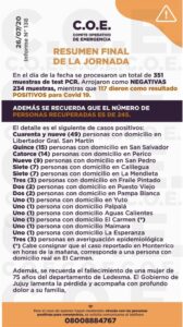 De esta manera, los casos totales ascienden a 1667, 46 los fallecimientos y 245 personas recibieron alta médica desde el inicio de la pandemia.