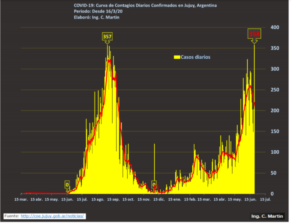 El ingeniero Carlos Martín, a cargo del observatorio, realizó un análisis de la evolución de la pandemia en Jujuy al 23 de junio último. Los principales datos: