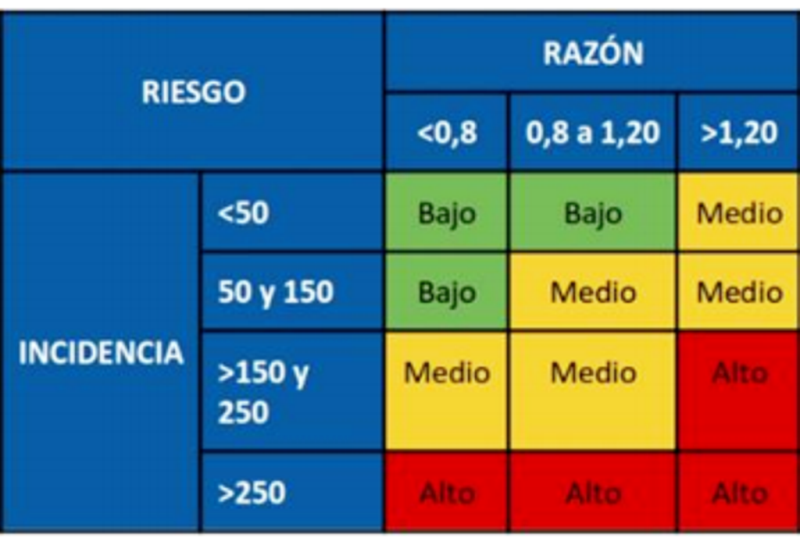 La razón de casos en los últimos 14 días es de 1,13. La incidencia acumulada de los últimos catorce días es de 427 casos por cien mil habitantes.
