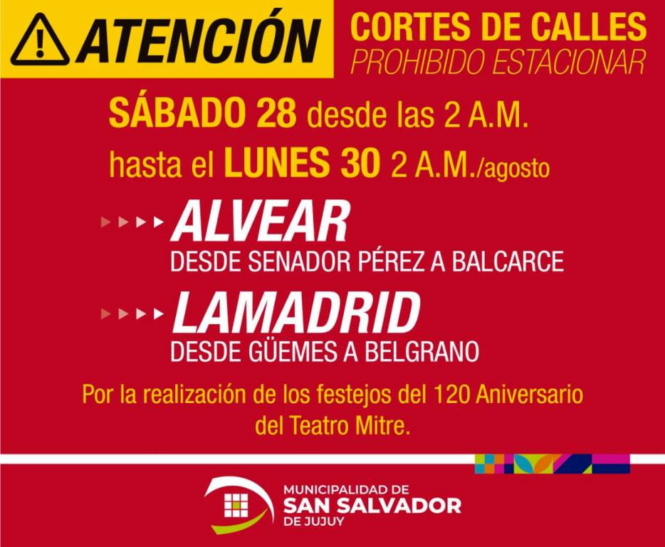 Desde esta noche, madrugada del sábado, se interrumpirá el tránsito en el microcentro debido a la realización de los festejos del 120° Aniversario del Teatro Mitre, a partir de las 2 del sábado 28, hasta las 2 del lunes 30, se procederá al corte de las calles: