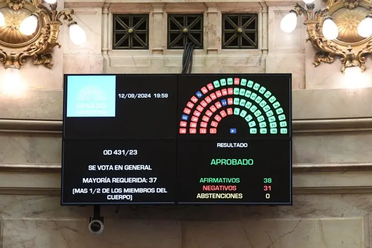 El proyecto cosechó, en la votación general, 39 votos a favor que fueron del oficialismo, la UCR, el Pro y los bloques provinciales. Mientras que los 30 votos en contra fueron de Unión por la Patria. Acto seguido, el senador entrerriano Edgardo Kueider, miembro informante del proyecto, leyó todas las modificaciones al texto y la votación en particular resultó con el mismo resultado.