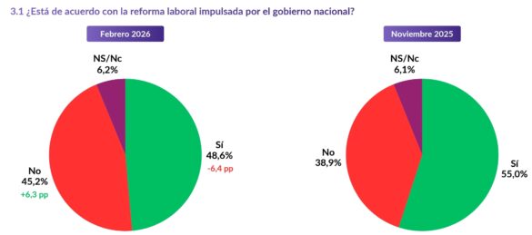En paralelo, la encuesta señala que el 48,6% acompaña la reforma laboral actualmente en discusión, evidenciando un apoyo relevante aunque menos contundente que el registrado en materia penal.