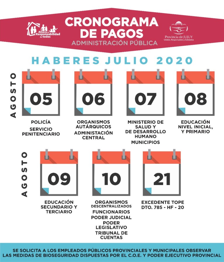 Hace intantes, la Tesorería de la provincia, anunció el inicio del cronograma de pago de haberes para los trabajadores de la administración píublica provincial.