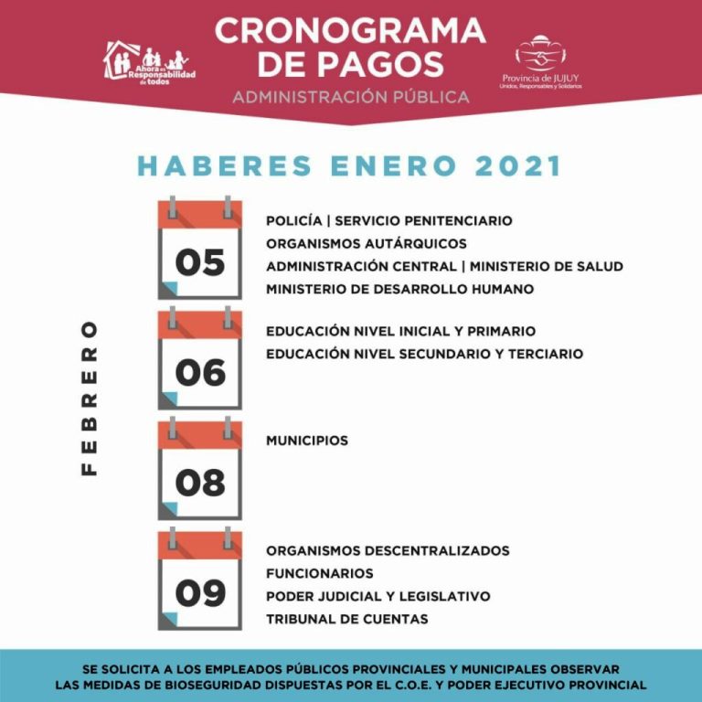 Este viernes 5 de febrero inicia el cronograma de pago de haberes correspondiente al mes de enero de 2021