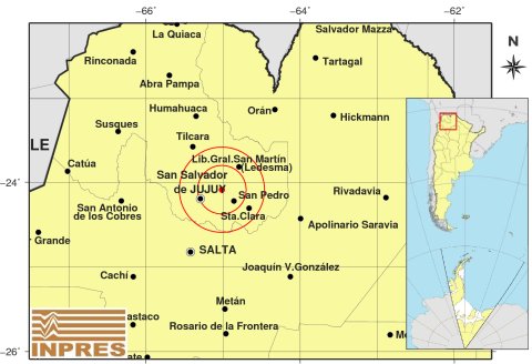 Un sismo de magnitud 3,5 en la escala de Richter sorprendió a los habitantes de Jujuy en la mañana de este jueves 5 de junio. El movimiento telúrico se registró a las 7:42 y tuvo su epicentro a 31 kilómetros al este de la capital provincial, específicamente a 38 kilómetros al sudoeste de Ledesma y 52 kilómetros al sudeste de Tumbaya, con una profundidad de 19 kilómetros.