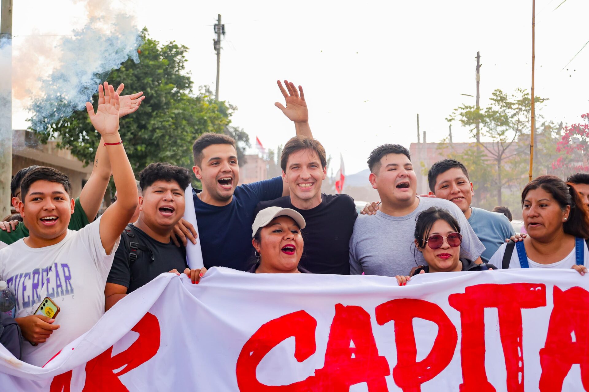 Los candidatos a diputados provinciales Adriano Morone, Gisel Bravo, Omar Gutiérrez, Ramón Neyra y Mario Lobo encabezaron la movilización junto a Ramiro Tejeda y Brenda “Pumita” Carabajal, postulantes al Concejo Deliberante. El respaldo popular fue contundente.