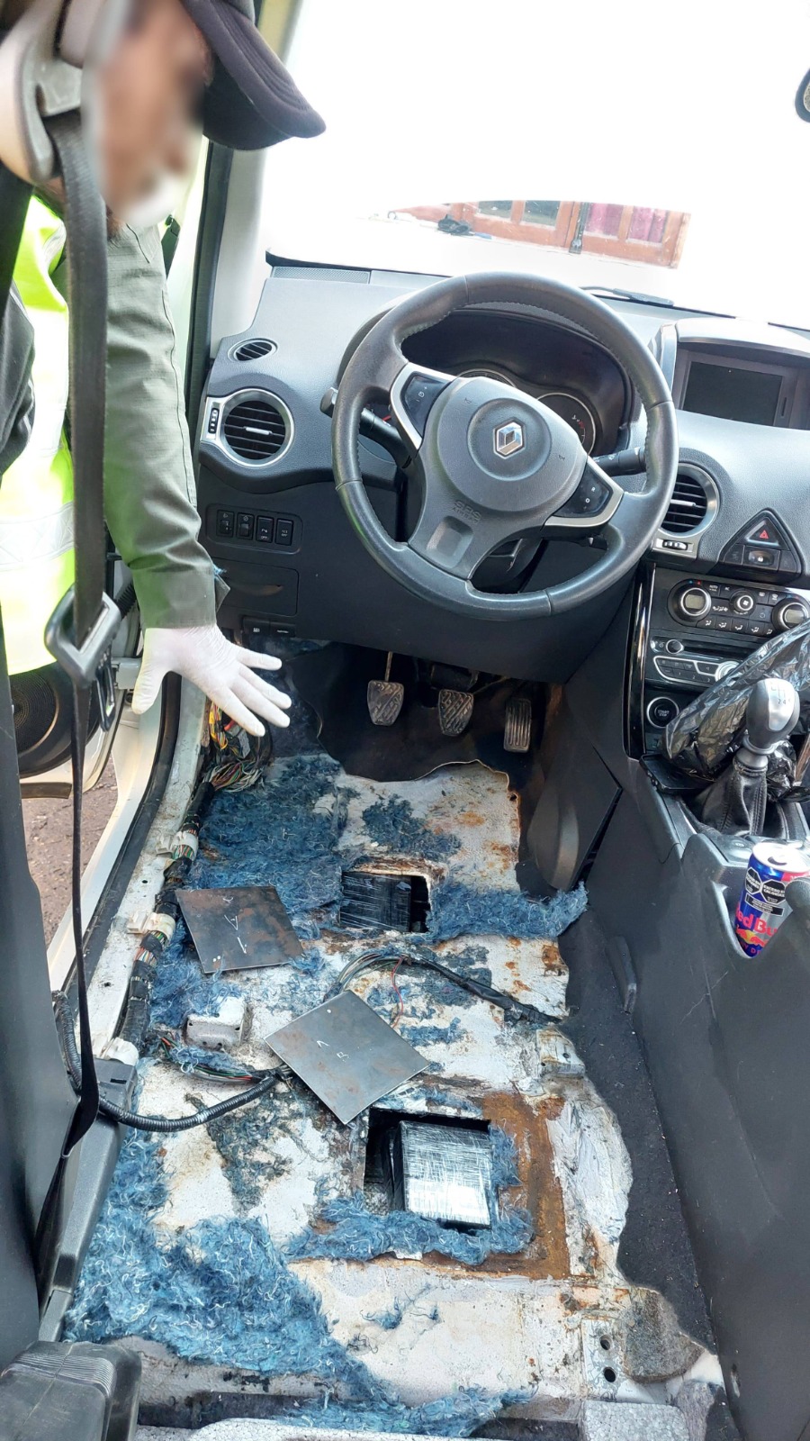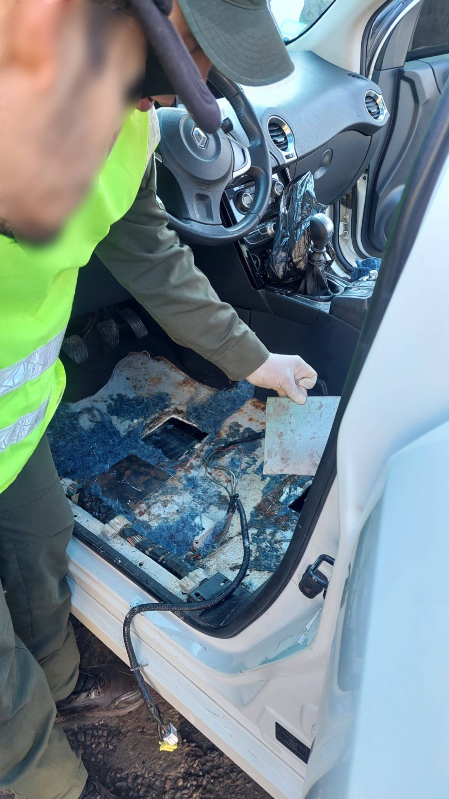 Al proceder a la inspección del vehículo, los gendarmes detectaron un doble fondo oculto en el sector del piso y en el lateral trasero del rodado. Como resultado de la requisa, se hallaron 50 paquetes rectangulares de color negro, comúnmente denominados «panes», que contenían una sustancia sospechosa.