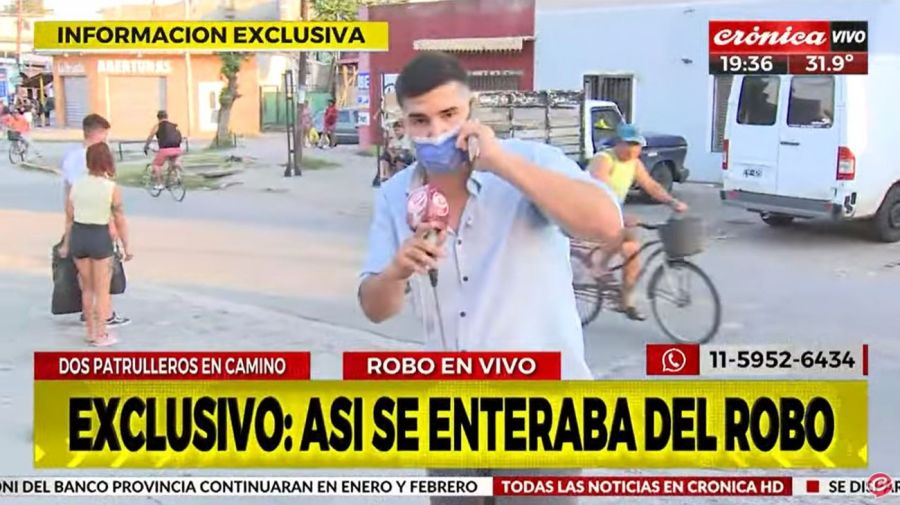 El periodista Alejandro Pueblas estaba en pleno vivo en Crónica HD cuando le avisaron que le estaban desvalijando la casa. El profesional pidió disculpas a sus compañeros y abandonó el móvil.