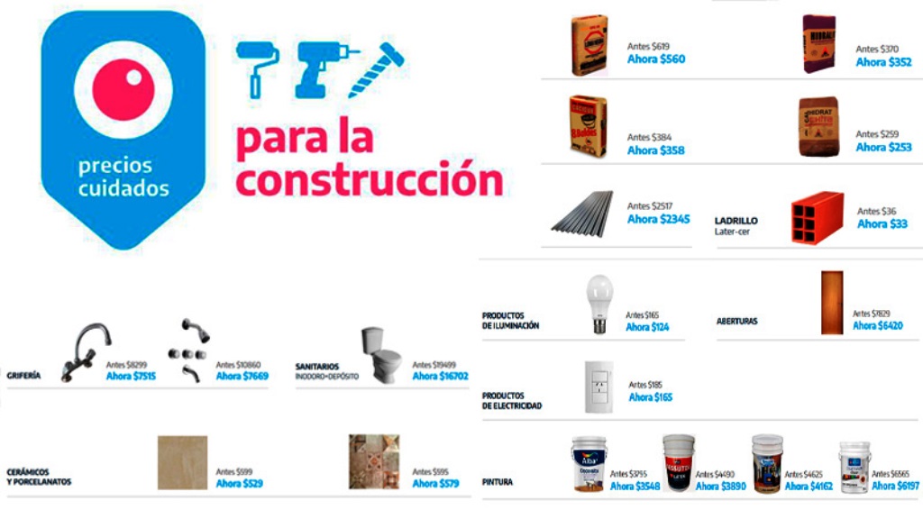 El Gobierno anunció la renovación del programa de Precios Cuidados para la construcción con un ajuste del 6,5%, el cual se extenderá hasta el 30 de noviembre próximo, con la actualización de esos valores para 89 productos de primeras marcas, en 13 rubros de obra fina.