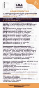 En el informe matutino, el COE confirmó que se registraron 122 casos positivos durante este jueves.